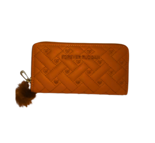 Zipper Wallet – Orange with Faux Fur Charm