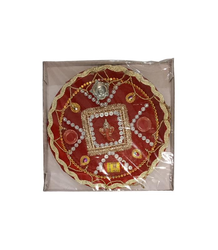 Traditional Red Velvet Ganesha Pooja Thali with Embellishments – for Rakhi, Diwali, Karwa Chauth