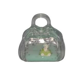 this Mini Bear in Car Decorative Water Globe, beautifully designed inside a transparent handbag-shaped casing. Inside, an adorable white bear drives a cute green car, floating in a water-filled display with shimmering star accents.